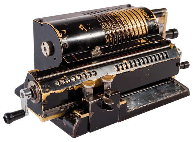 устройство, позволяющее складывать, вычитать, умножать и делить с фиксированным количеством разрядов. Принципы расчёта воплощены в механизмах устройства. Расчёт производится по шагам (алгоритмически), с учётом переноса между разрядами.