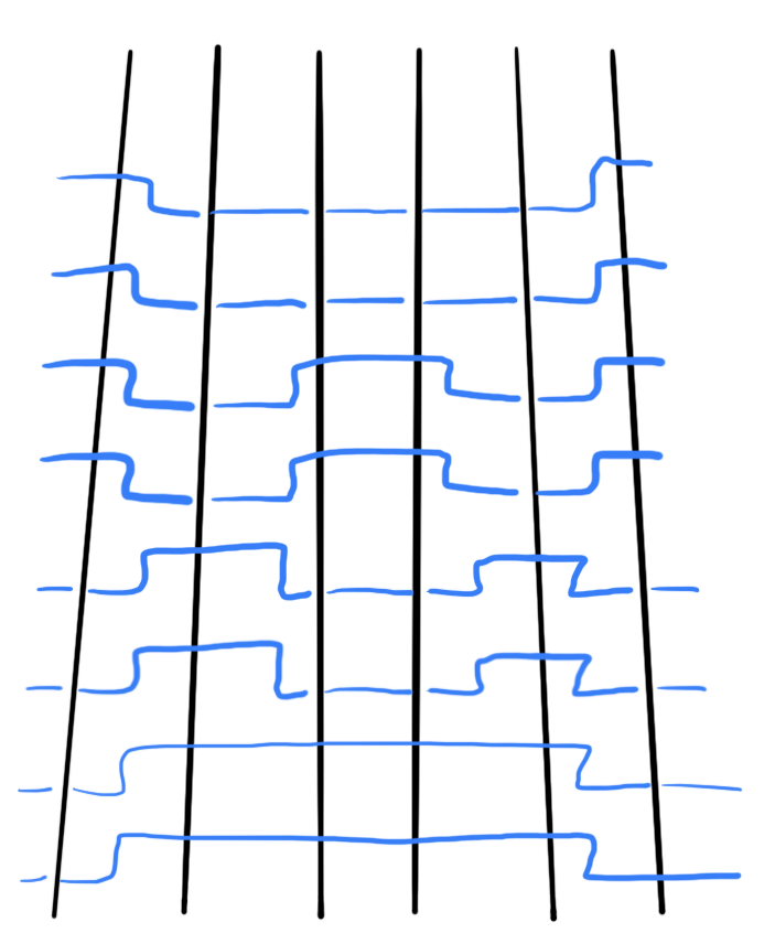 ```text L1 L2 o o | Logical AND | | | +--[ ]--------[ ]-----------( )---------+ | Key 1 Key 2 Door motor | | | ``` ```text L1 L2 o o | Logical NOT | | | +--[ ]----------------------(\)---------+ | Key 1 Door motor | | | ```