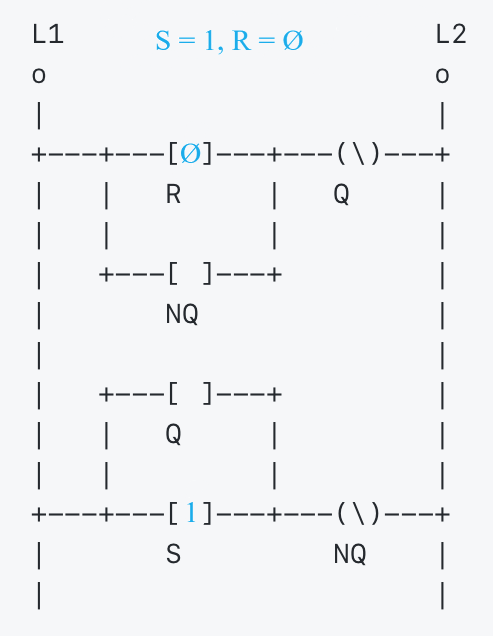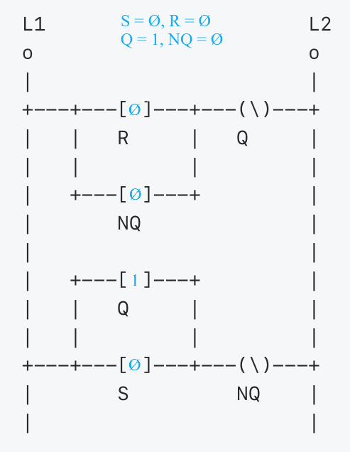 ---- #### `S=1; R=0`. 1  ---- #### `S=1; R=0`. 2  ---- #### `S=1; R=0`. 3  ---- #### `S=1; R=0`. 4  ---- #### `S=1; R=0`. 5  ---- #### `S=0; R=1`. 1  ---- #### `S=0; R=1`. 2  ---- #### `S=0; R=1`. 3  ---- #### `S=0; R=0; Q=1; NQ=0`. 1  ---- #### `S=0; R=0; Q=1; NQ=0`. 2  --- ### Программируемые логические контроллеры