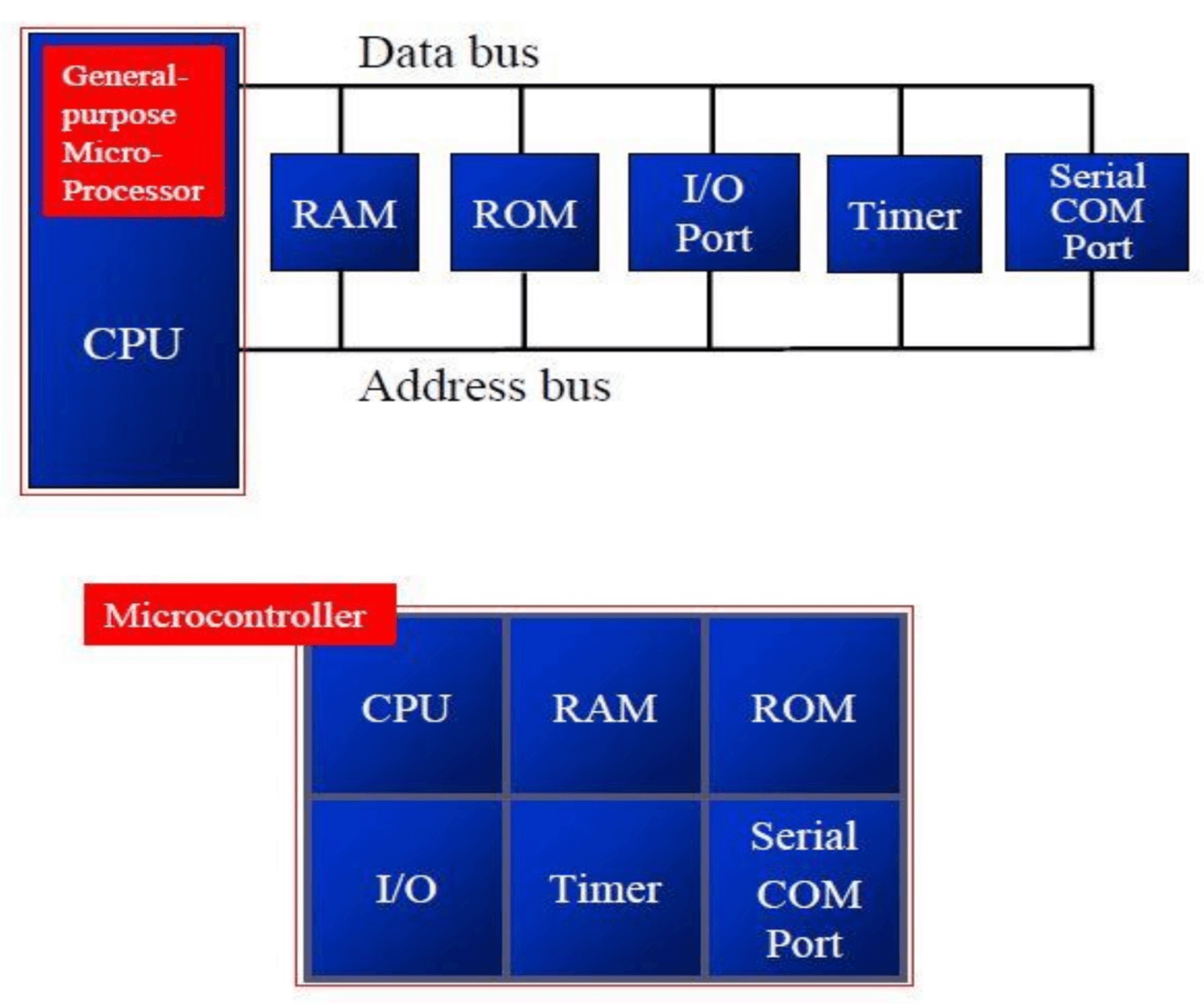 Типичный микроконтроллер сочетает функции процессора и периферийных устройств, содержит ОЗУ и (или) ПЗУ.